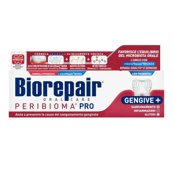BioRepair Peribioma PRO to zaawansowana pasta do zębów opracowana z myślą o kompleksowej ochronie jamy ustnej. Jej unikalna formuła zawierająca probiotyki pomaga w utrzymaniu prawidłowej równowagi bakteryjnej w ustach, jednocześnie wspierając walkę z problemami dziąseł, krwawieniem oraz nieprzyjemnym zapachem z ust.