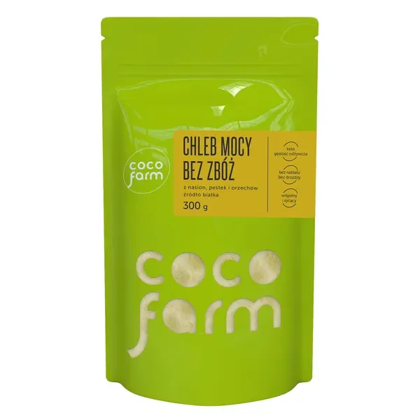 Chleb Mocy to innowacyjna mieszanka do wypieku od marki Coco Farm, która stanowi doskonałą alternatywę dla tradycyjnego pieczywa. Produkt został stworzony z myślą o osobach prowadzących specjalne diety, oferując naturalny skład bez zbóż i wysokowęglowodanowych składników.