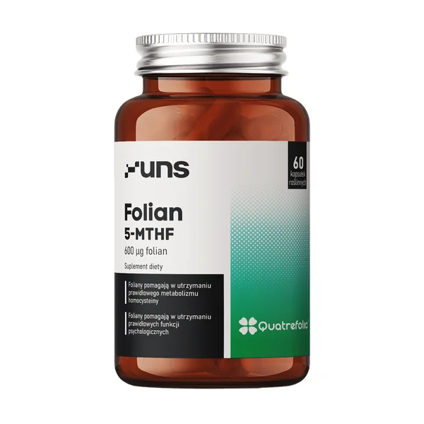 Folian 5-MTHF 600 µg to nowoczesny suplement diety firmy Uns, który dostarcza organizmowi aktywną formę kwasu foliowego w postaci soli glukozaminowej. Produkt wykorzystuje opatentowaną technologię Quatrefolic®, zapewniającą wysoką biodostępność składnika aktywnego.