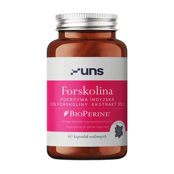 Uns Forskolina + Bioperine to kompleksowy suplement łączący tradycyjną wiedzę o właściwościach pokrzywy indyjskiej z nowoczesną technologią BioPerine®. Preparat stanowi wsparcie dla osób dążących do kontroli masy ciała w ramach zdrowego stylu życia.