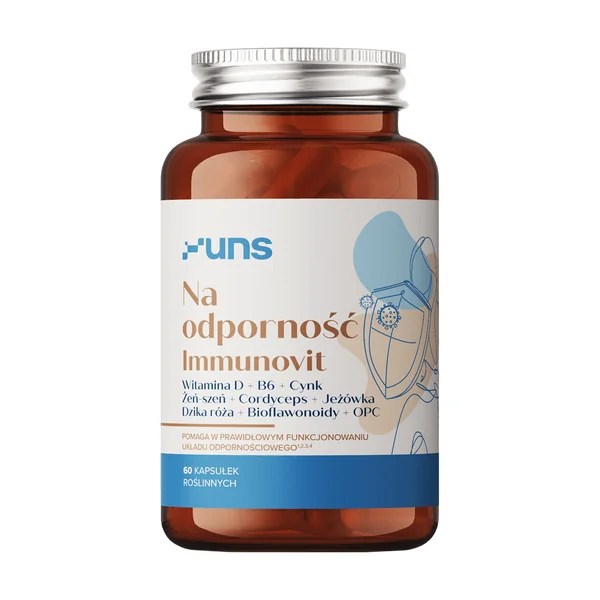 Immunovit to zaawansowany suplement diety marki UNS, opracowany z myślą o wspieraniu naturalnej odporności organizmu. Preparat łączy w sobie starannie dobrane ekstrakty roślinne z niezbędnymi witaminami i minerałami w wygodnej formie kapsułek.