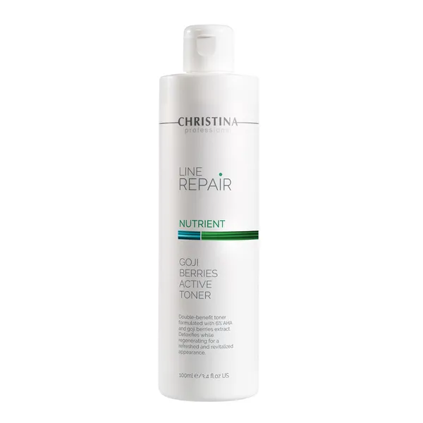 Christina Line Repair Nutrient to tonik pielęgnacyjny wzbogacony ekstraktem z jagód goji, opracowany z myślą o codziennej pielęgnacji skóry twarzy. Formuła łączy naturalne składniki aktywne z nowoczesną technologią, wspierając proces odnowy komórkowej i przywracając skórze naturalną równowagę. Produkt przeznaczony jest dla osób powyżej 25 roku życia, szczególnie z cerą wymagającą odświeżenia i regeneracji.