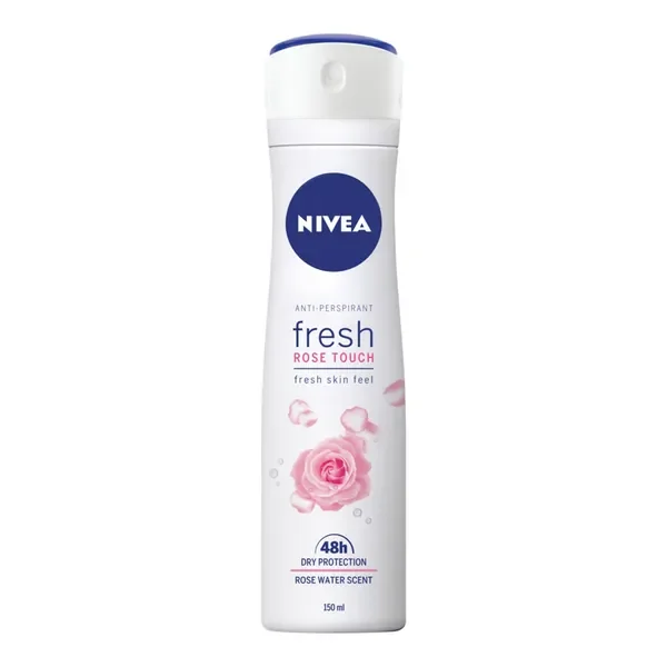 Nivea Fresh Rose Touch to antyperspirant w formie spraju, który łączy skuteczną ochronę przed nadmiernym poceniem z delikatnym aromatem wody różanej. Produkt oferuje długotrwałą ochronę i jednocześnie dba o kondycję skóry pod pachami.