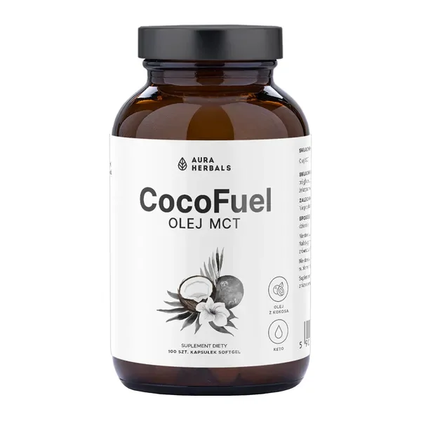Aura Herbals Coco Fuel to nowoczesny preparat zawierający olej MCT (Medium Chain Triglycerides) w praktycznej formie kapsułek żelowych. Produkt wykorzystuje właściwości oleju kokosowego, z którego pozyskiwane są średniołańcuchowe trójglicerydy kwasów tłuszczowych. Każda kapsułka została zaprojektowana tak, aby zapewnić optymalną dawkę aktywnych składników, co czyni suplement wygodnym w codziennym stosowaniu. Formula została dedykowana wyłącznie osobom dorosłym, które chcą wzbogacić swoją dietę o wartościowe składniki pochodzenia naturalnego.