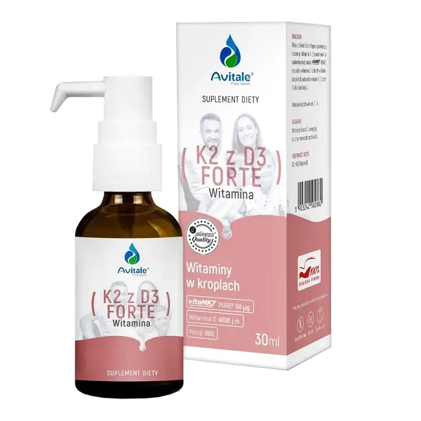 Avitale Witamina K2 z D3 Forte to kompleksowy suplement wspierający zdrowie kości i układ odpornościowy. Dzięki wysokiej jakości składnikom i wygodnej formie aplikacji stanowi doskonały wybór dla osób dbających o swoje zdrowie na co dzień.