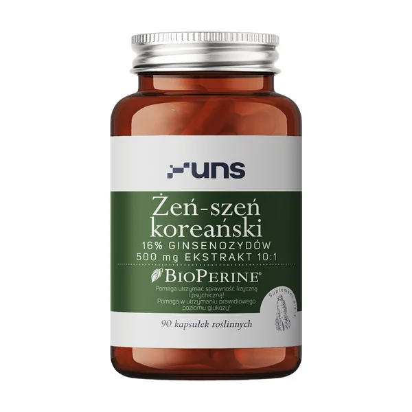 Żeń-szeń koreański 500 mg + Bioperine 2 mg 90 kapsułek [Uns]